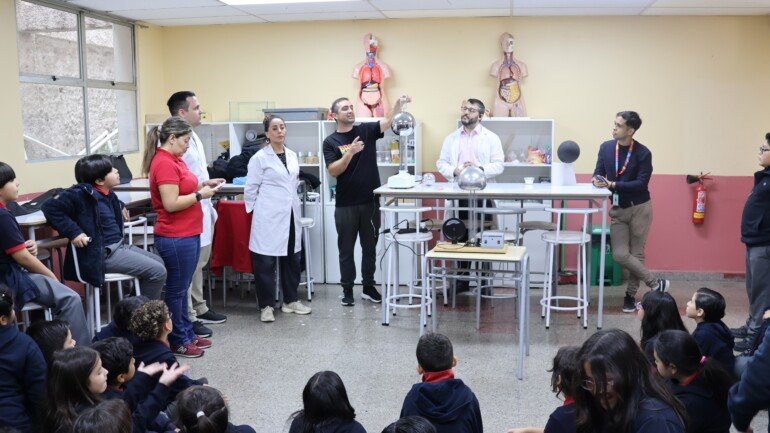 Durante la jornada se llevaron a cabo dos experimentos: la lámpara de lava y una actividad de electromagnetismo, en la que los estudiantes pudieron experimentar con sus propias manos, observar, cuestionarse y descubrir los fenómenos químicos o físicos involucrados. Además, se incorporó una experiencia nueva: una demostración sobre hidrógeno verde.